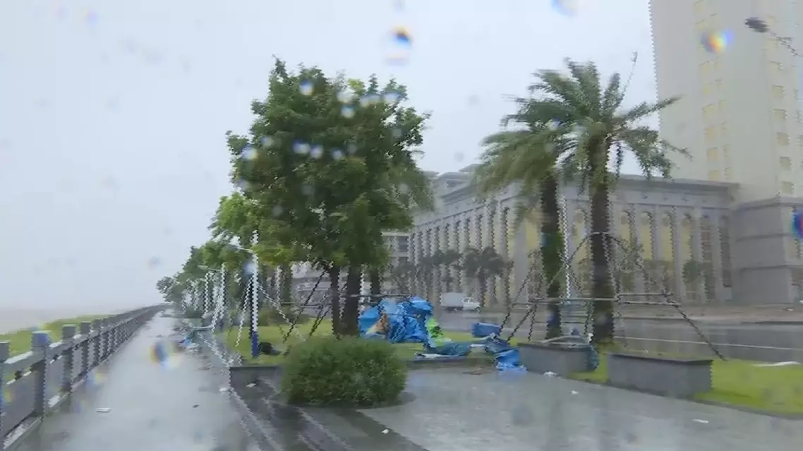 In addition to the rough sea, the strong winds and heavy rain on land have caused trees to topple, despite the efforts of relevant authorities to reinforce them. Items such as rainproof cloth and trans bins have been wrapped onto the roads, while the accumulated water on the road surface has also been blown into ripples by the crosswind.