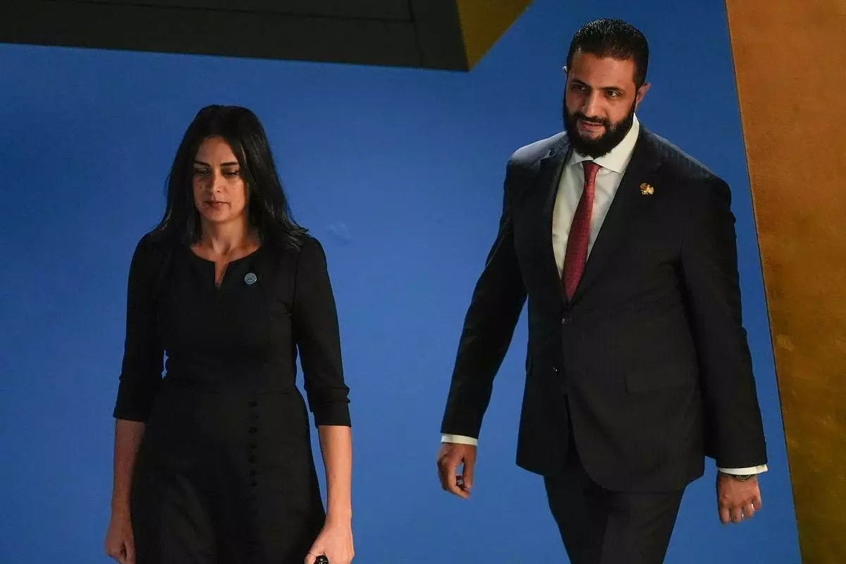 Syria President Ahmad Al-Sharaa arrives to speak during the 80th session of the United Nations General Assembly, Wednesday, Sept. 24, 2025, at U.N. headquarters. (AP Photo/Yuki Iwamura)