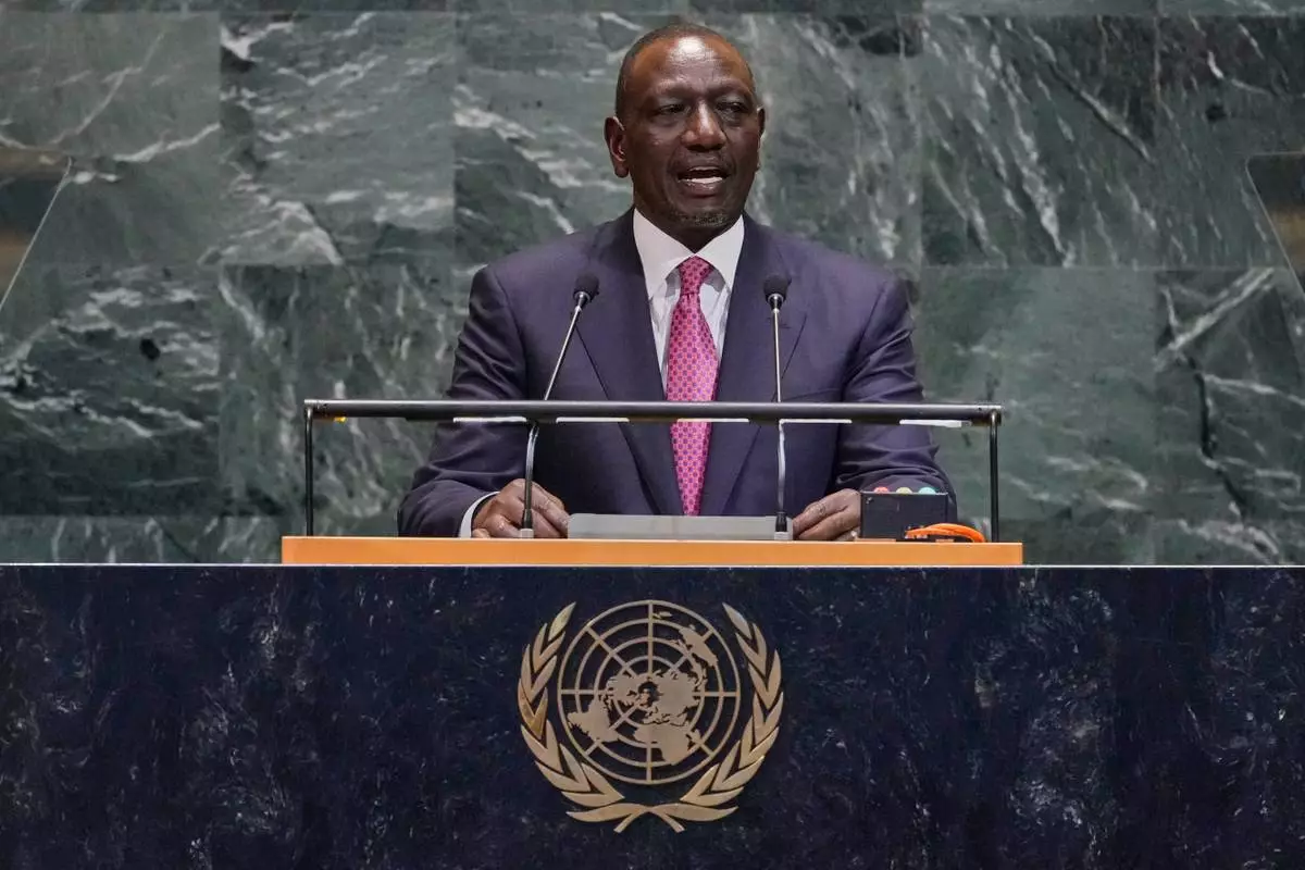 Kenya President William Ruto addresses the 80th session of the United Nations General Assembly, Wednesday, Sept. 24, 2025. (AP Photo/Richard Drew)