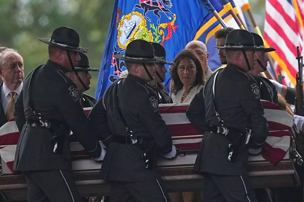 RED LION, Pa. (AP) — Three Pennsylvania detectives shot to death last week while attempting to arrest a stalking suspect were remembered at their funeral Thursday as exemplary officers and devoted family men.