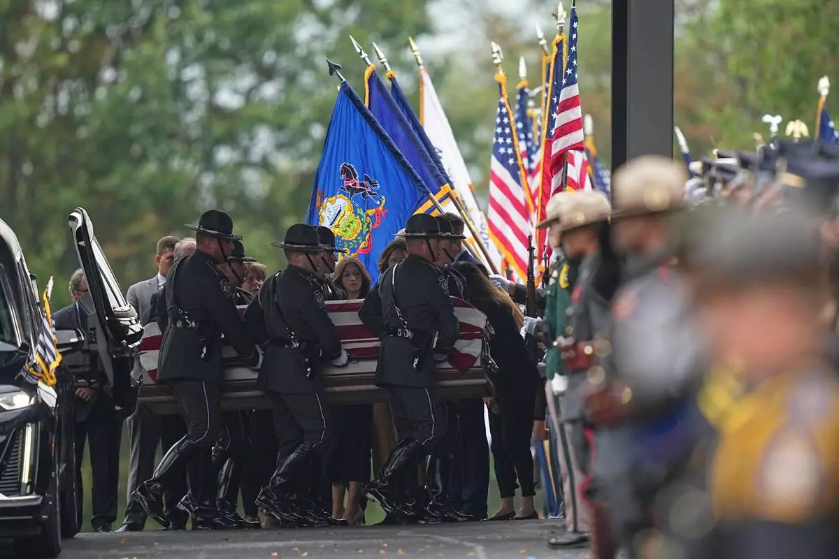 Hundreds of police officers were on hand to mourn them at Living Word Community Church in Red Lion in southeastern Pennsylvania after a motorcade brought their flag-draped caskets from a funeral home.