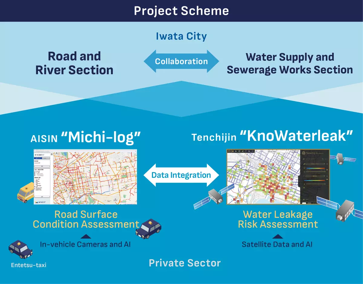 Tenchijin's "KnoWaterleak" and AISIN's "Michi-log" Announcing Collaboration on Japan's First Pilot Project for Integrated Road and Water Infrastructure Management in Iwata City