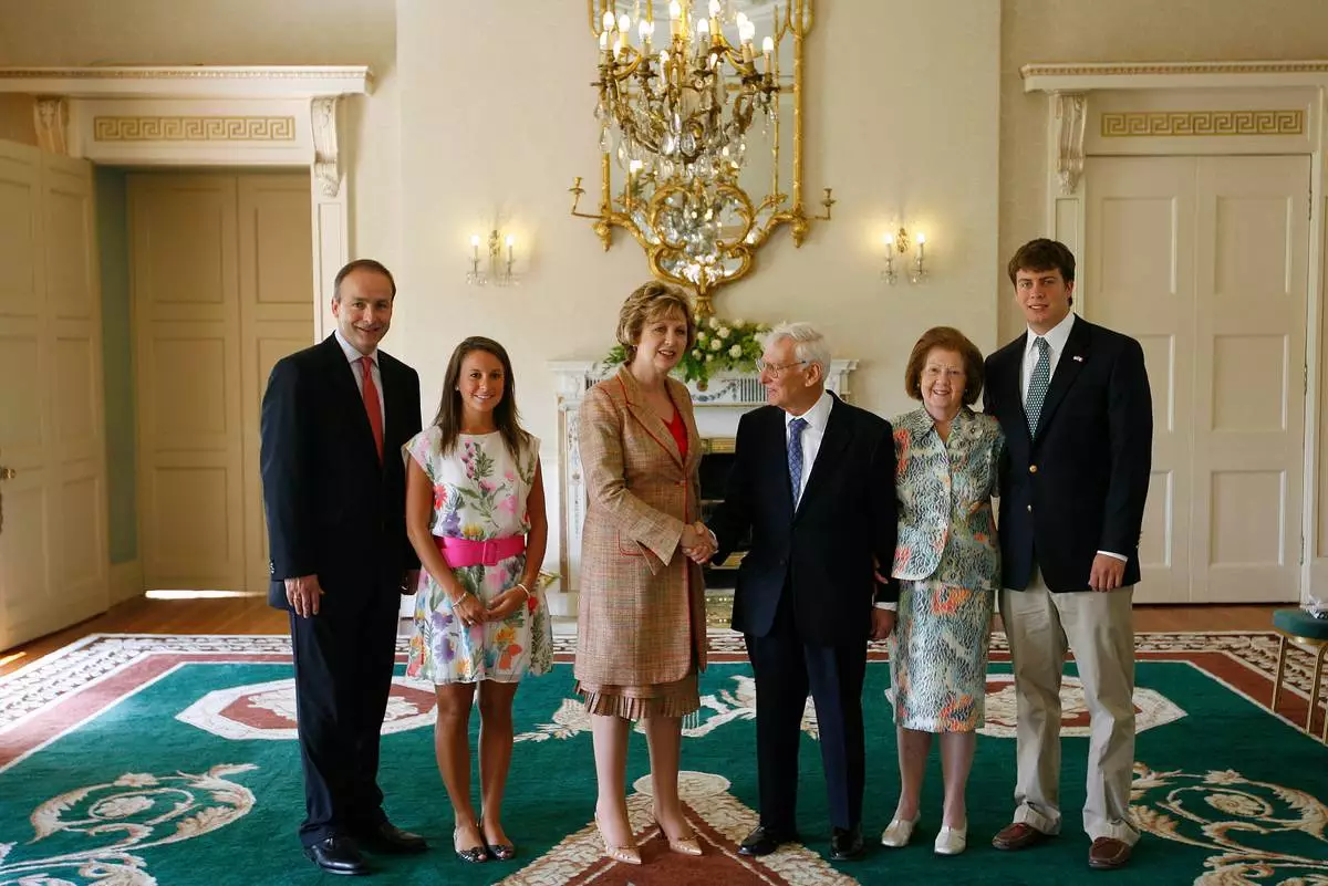 FILE - Daniel Rooney, Ambassador of the United States of America to Ireland meets with Irish President Mary Mc Aleese at Aras an Uachtarain, Dublin, Ireland, Friday, July, 2, 2009 (AP Photo/Peter Morrison, file)