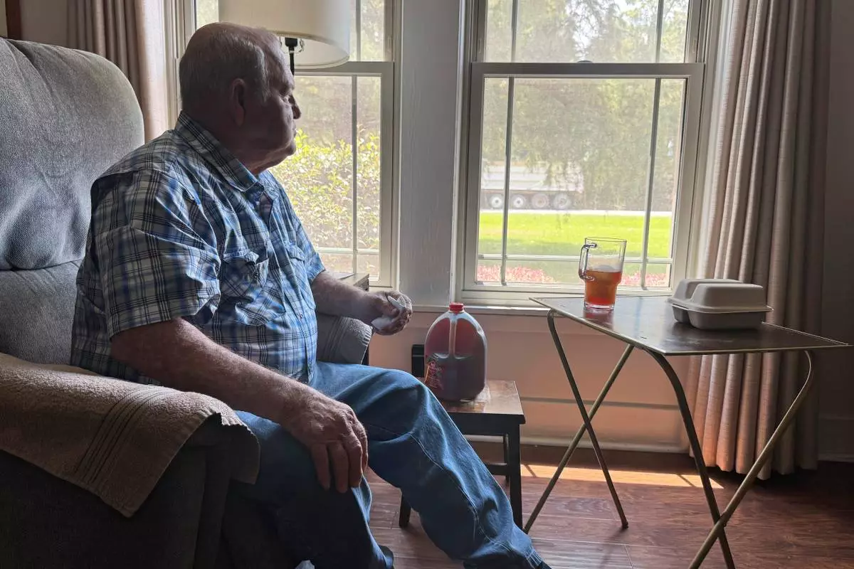 Buddy McCartney watches hundreds of trucks pass by his home in Holly Ridge, La., on their way to what will become Meta's largest data center, Monday, Aug. 18, 2025. (AP Photo/Sophie Bates)