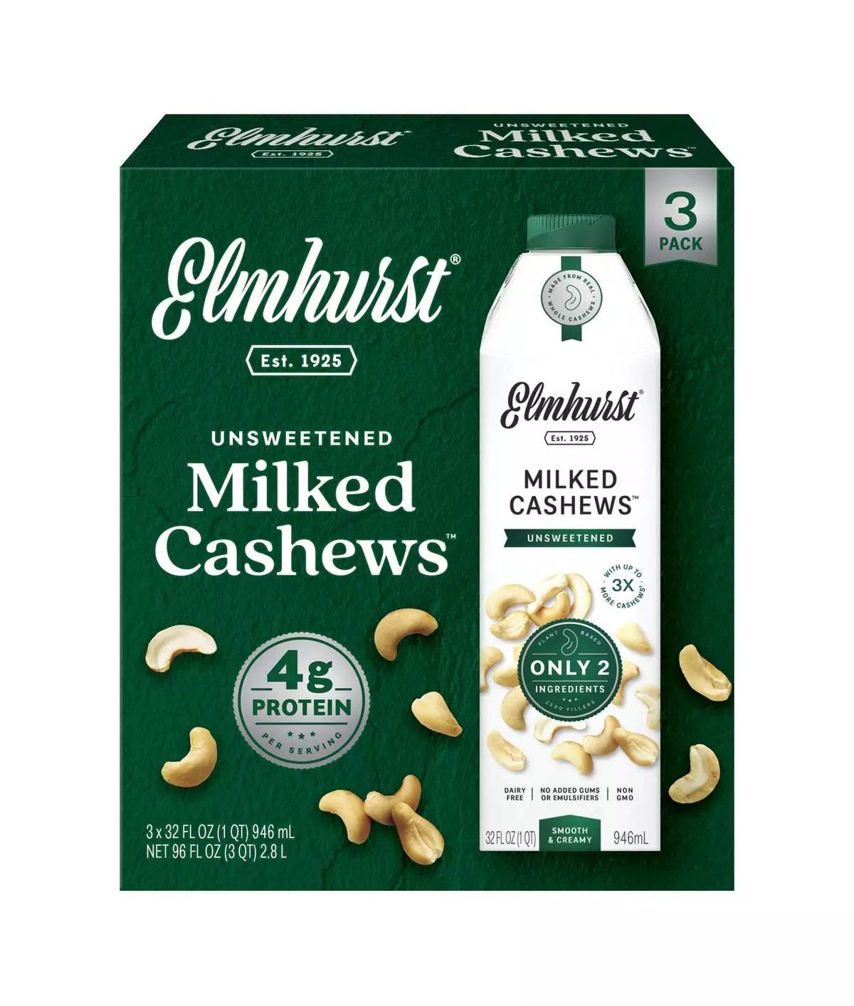 Elmhurst 1925 Unsweetened Cashew Milk 3-Pack