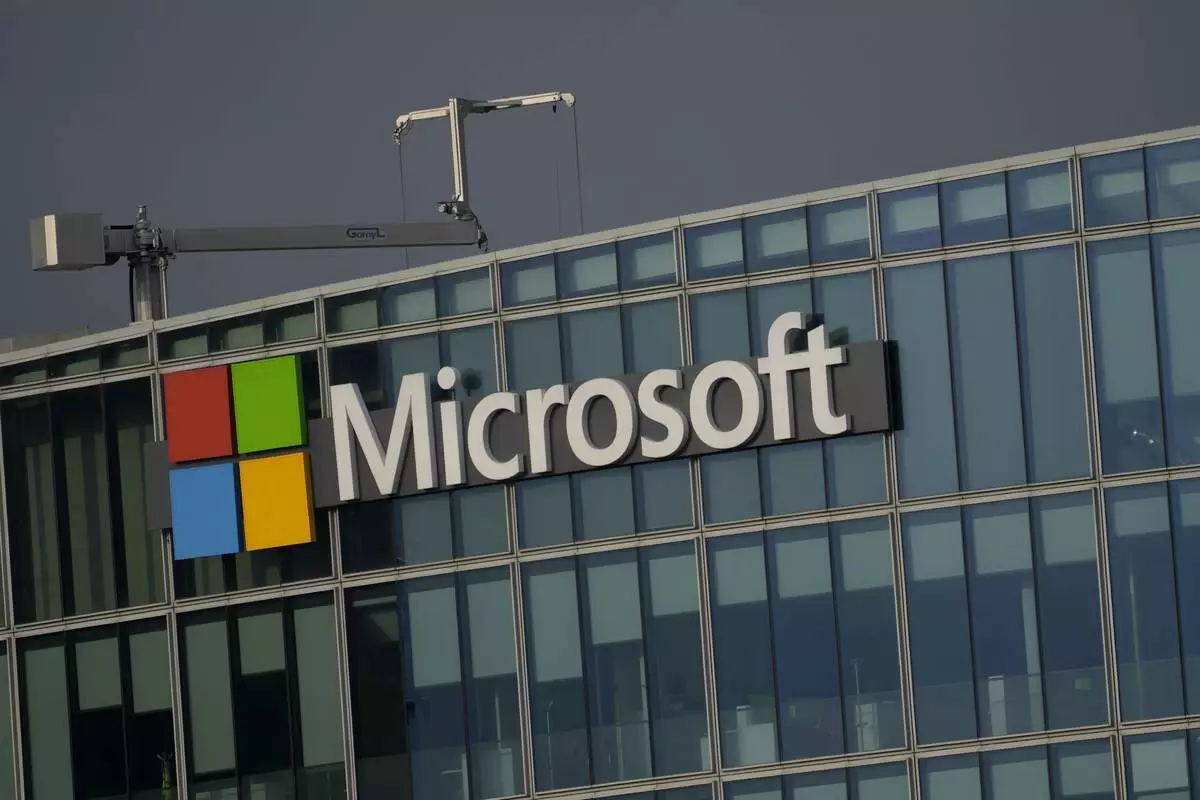 FILE - The logo of Microsoft is seen outside its French headquarters in Issy-les-Moulineaux, outside Paris, on May 13, 2024. (AP Photo/Thibault Camus, File)
