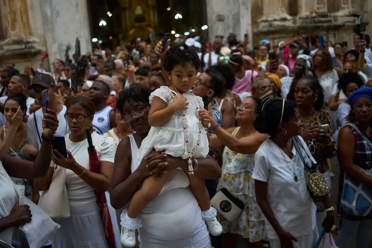 Faithful gather for a procession honoring Our Lady of Mercy in Havana, Wednesday, Sept. 24, 2025. (AP Photo/Ramon Espinosa)