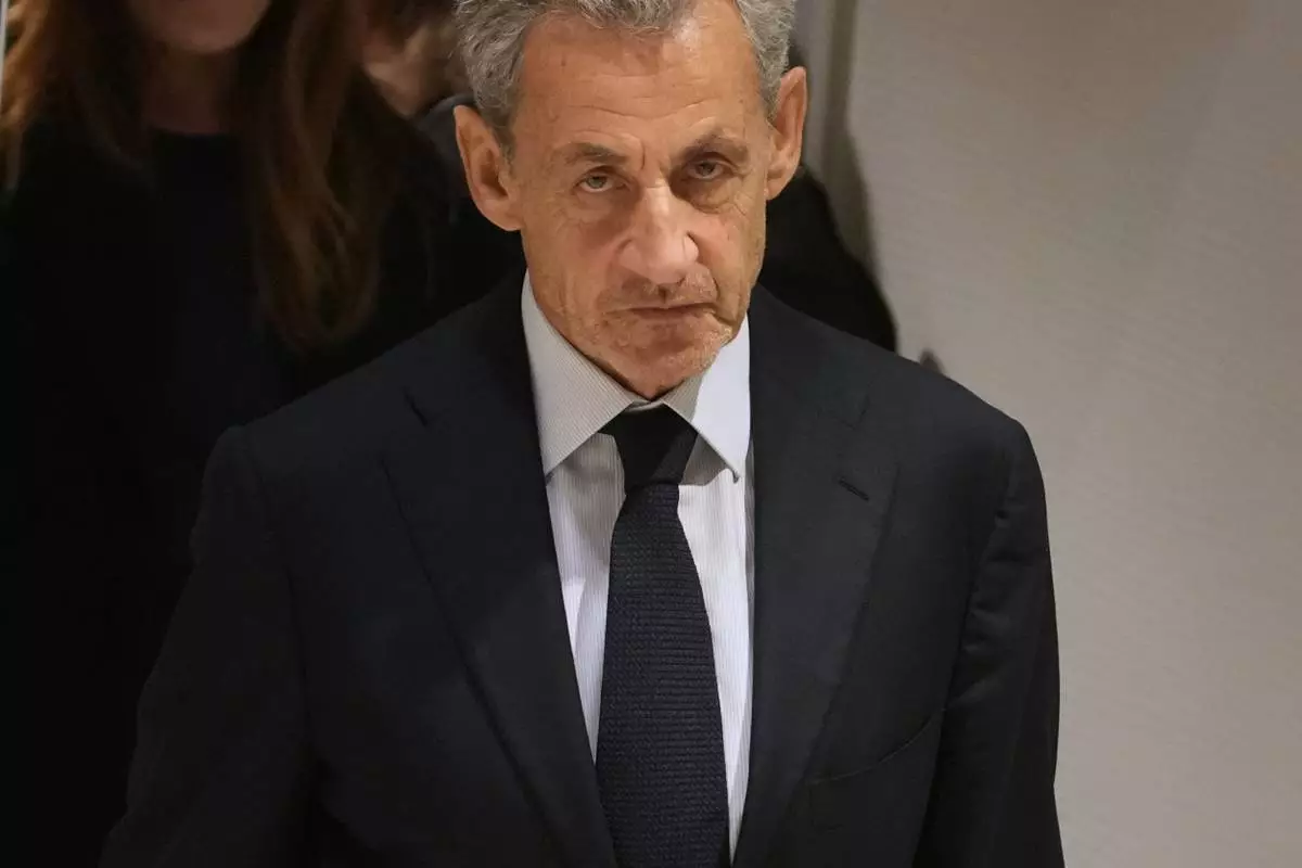Former French President Nicolas Sarkozy leaves after a Paris court sentenced him to 5 years after finding him guilty of criminal conspiracy in an alleged scheme to finance his 2007 campaign with funds from Libya, Thursday, Sept. 25, 2025 in Paris. (AP Photo/Christophe Ena)