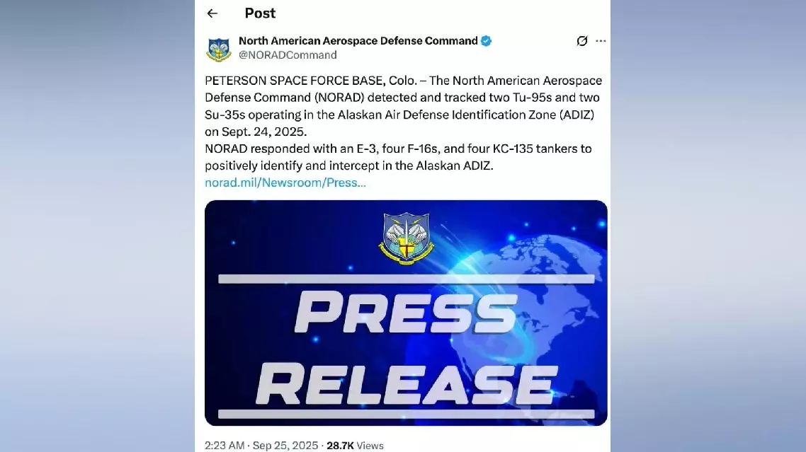 NORAD responded by dispatching an E-3 early warning aircraft, four F-16 fighter jets, and four KC-135 tanker planes, which effectively identified and intercepted the Russian aircraft, it said.