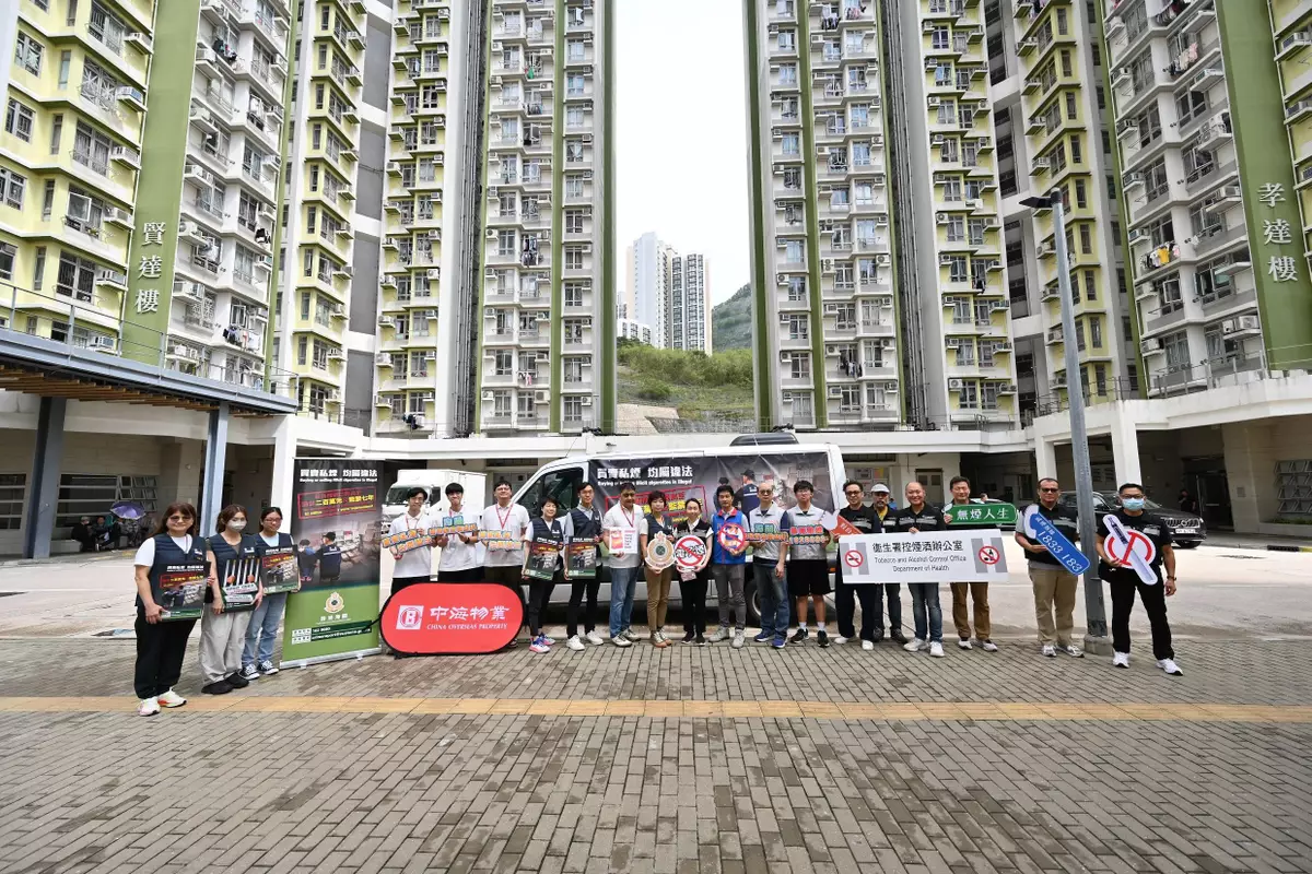 Hong Kong Customs conducted a joint anti-illicit cigarette publicity campaign with members of the Kwun Tong District Council, the Tobacco and Alcohol Control Office (TACO) of the Department of Health, the Housing Department and the Community Care Teamat On Tat Estate in Kwun Tong today (September 26).