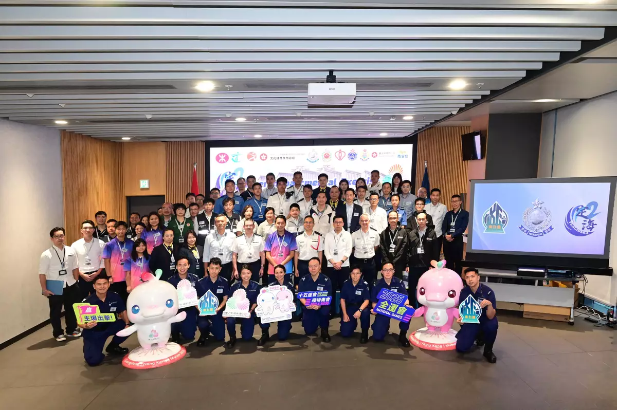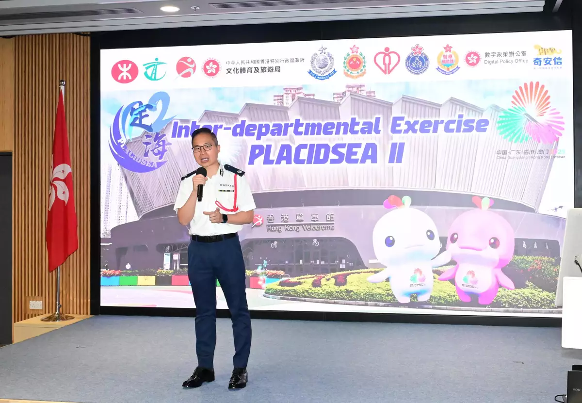 The Kowloon East Region of the Hong Kong Police Force (HKPF) today (September 26) conducted the inter-departmental tabletop exercise for the 15th National Games (NG), the 12th National Games for Persons with Disabilities (NGD) and the 9th National Special Olympic Games (NSOG), codenamed "PLACIDSEA II", at the Kowloon East Regional Headquarters.