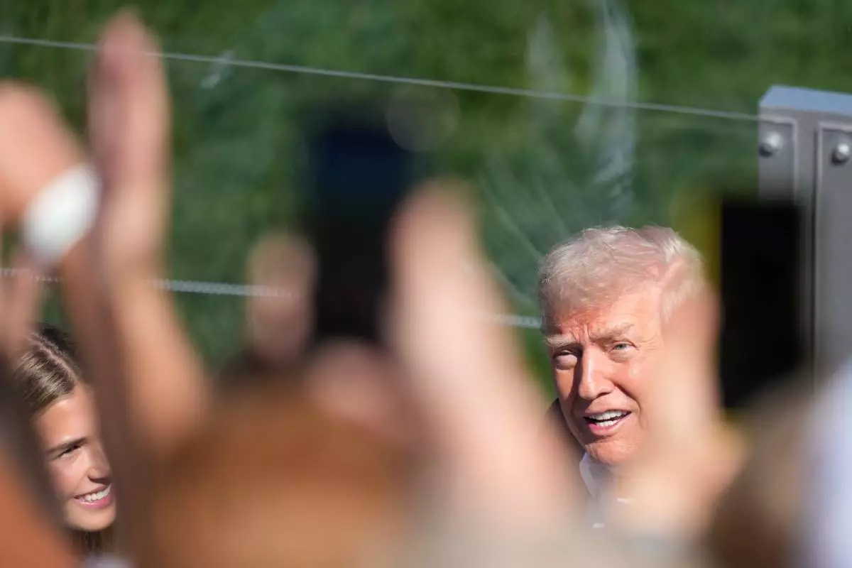 President Donald Trump greets the crowd accompanied by his granddaughter Kai Trump, left, as he arrives at the Ryder Cup golf tournament on the Bethpage Black golf course in Farmingdale, N.Y., Friday, Sept. 26, 2025. (AP Photo/Alex Brandon)