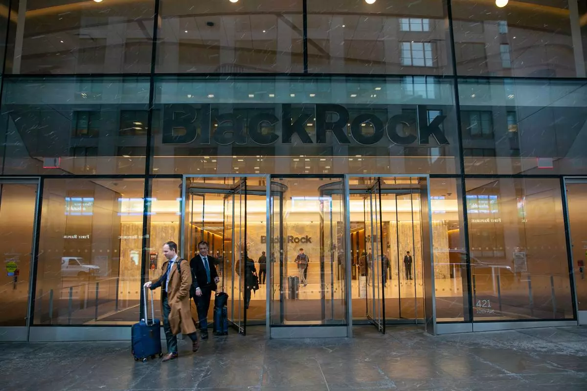 FILE - People leave the The BlackRock investment company in the Hudson Yards neighborhood of New York, Tuesday, March 14, 2023. (AP Photo/Ted Shaffrey, File)