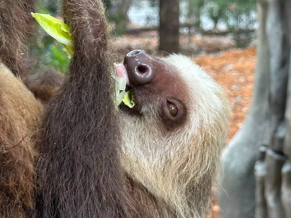 A Hoffman's two-toed sloth is seen eating inside its new habitat at the Palm Beach Zoo Conservation Society on Thursday, Sept. 18, 2025 in West Palm Beach, Fla. (AP Photo/Cody Jackson)