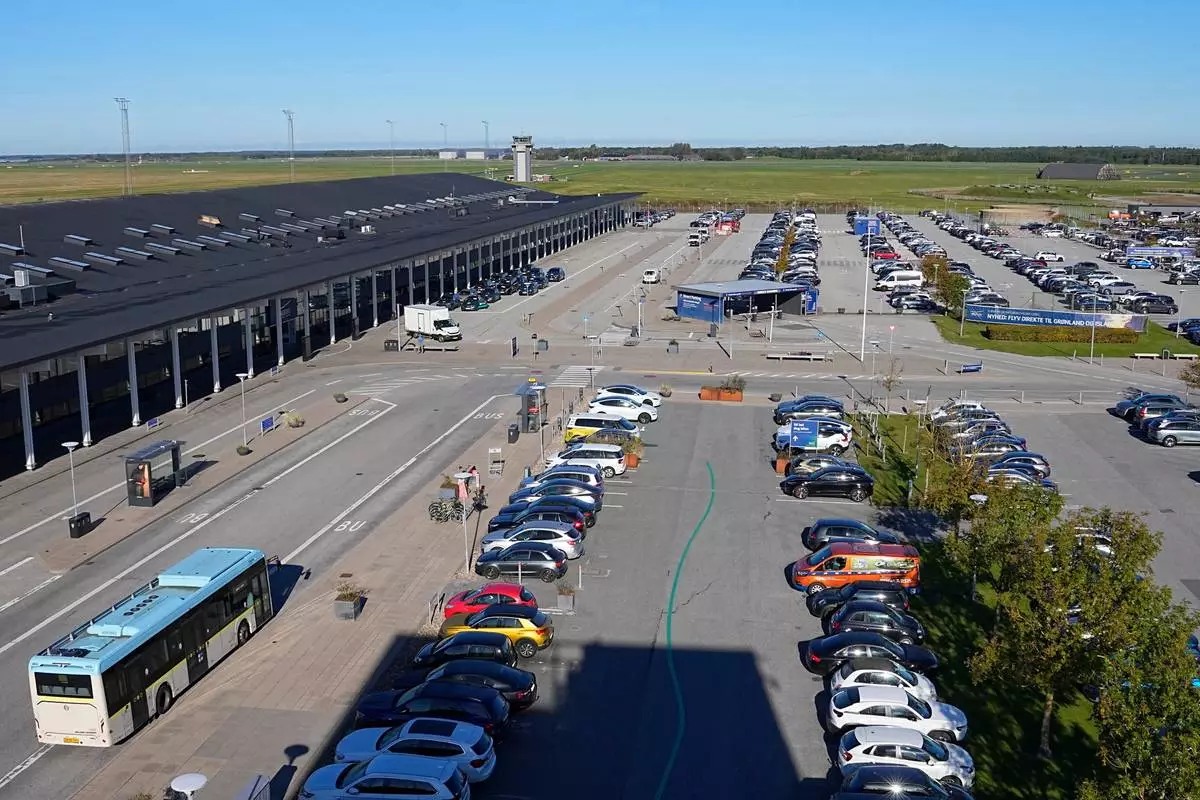 General view of Aalborg Airport in Denmark, Thursday, Sept. 25, 2025, after drones were observed on the airport on Wednesday evening and the night to Thursday, and the airspace over the airport was closed. (Bo Amstrup/Ritzau Scanpix via AP)