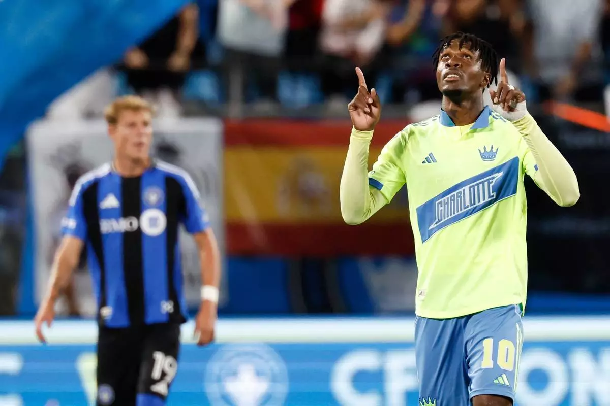 Los Angeles Rams quarterback Matthew Stafford answers question after an NFL wild-card playoff football game against the Carolina Panthers, Saturday, Jan. 10, 2026, in Charlotte, N.C. (AP Photo/Rusty Jones)