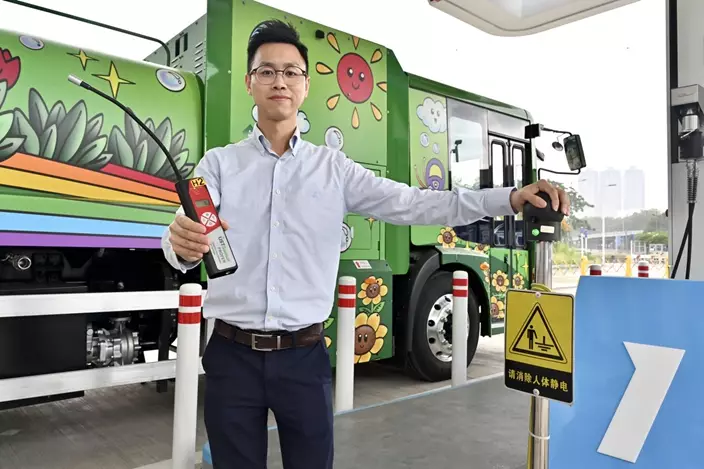 Safety first: Electrical & Mechanical Services Department Engineer Marco Lam says to ensure safety, hydrogen refuelling must be operated by trained personnel. Image source news.gov.hk