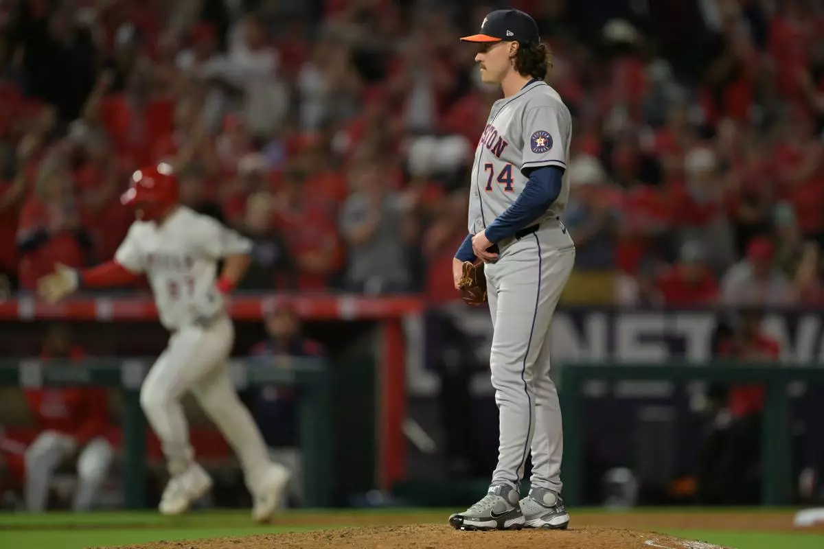 ANAHEIM, Calif. (AP) — The Houston Astros’ streak of eight consecutive playoff appearances ended Saturday night in the second inning of their 6-1 victory over the Los Angeles Angels.