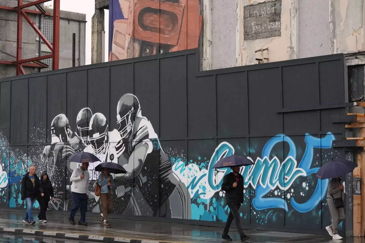 A well-known mural in the city center called “Do Not Remove” — addressing a housing crisis — was painted over as part of a series of NFL-themed murals. Artist Neto Vettorello told the Journal.ie that he wasn't informed ahead of time.