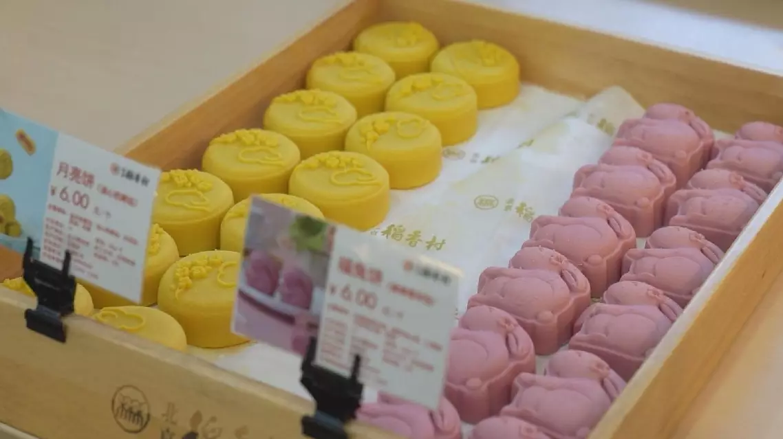 In Beijing's time-honored Daoxiangcun bakery, mooncakes occupy the front and center of store displays. This year, the shop has launched six freshly baked varieties with unique flavors, an instant hit among shoppers.