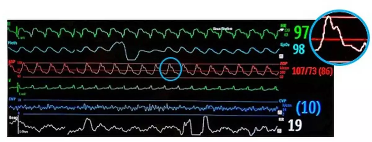 The vital signs of the patient with physiological pulsatility are shown in this picture.