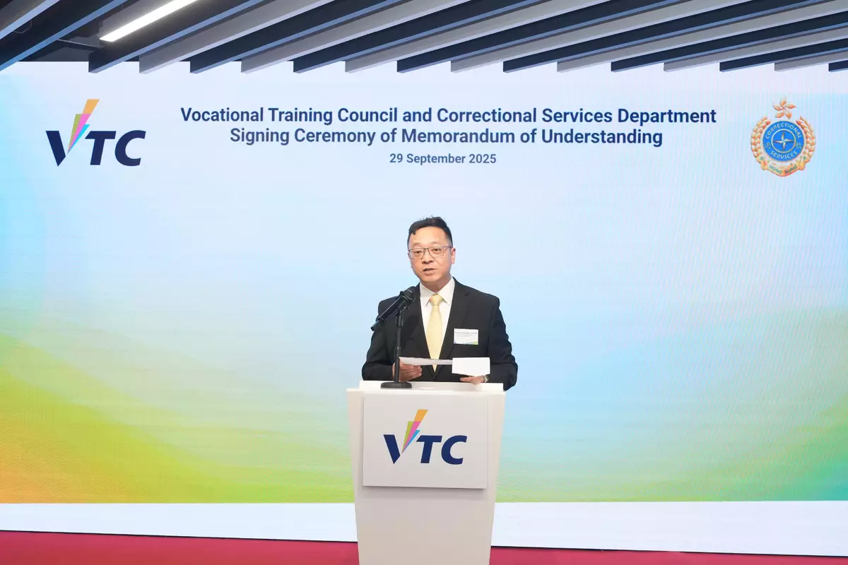 The Correctional Services Department (CSD) and the Vocational Training Council (VTC) signed a Memorandum of Understanding (MOU) today (September 29) to deepen collaboration, which will inject new impetus into the sustainable development of correctional services and the promotion of talent training.