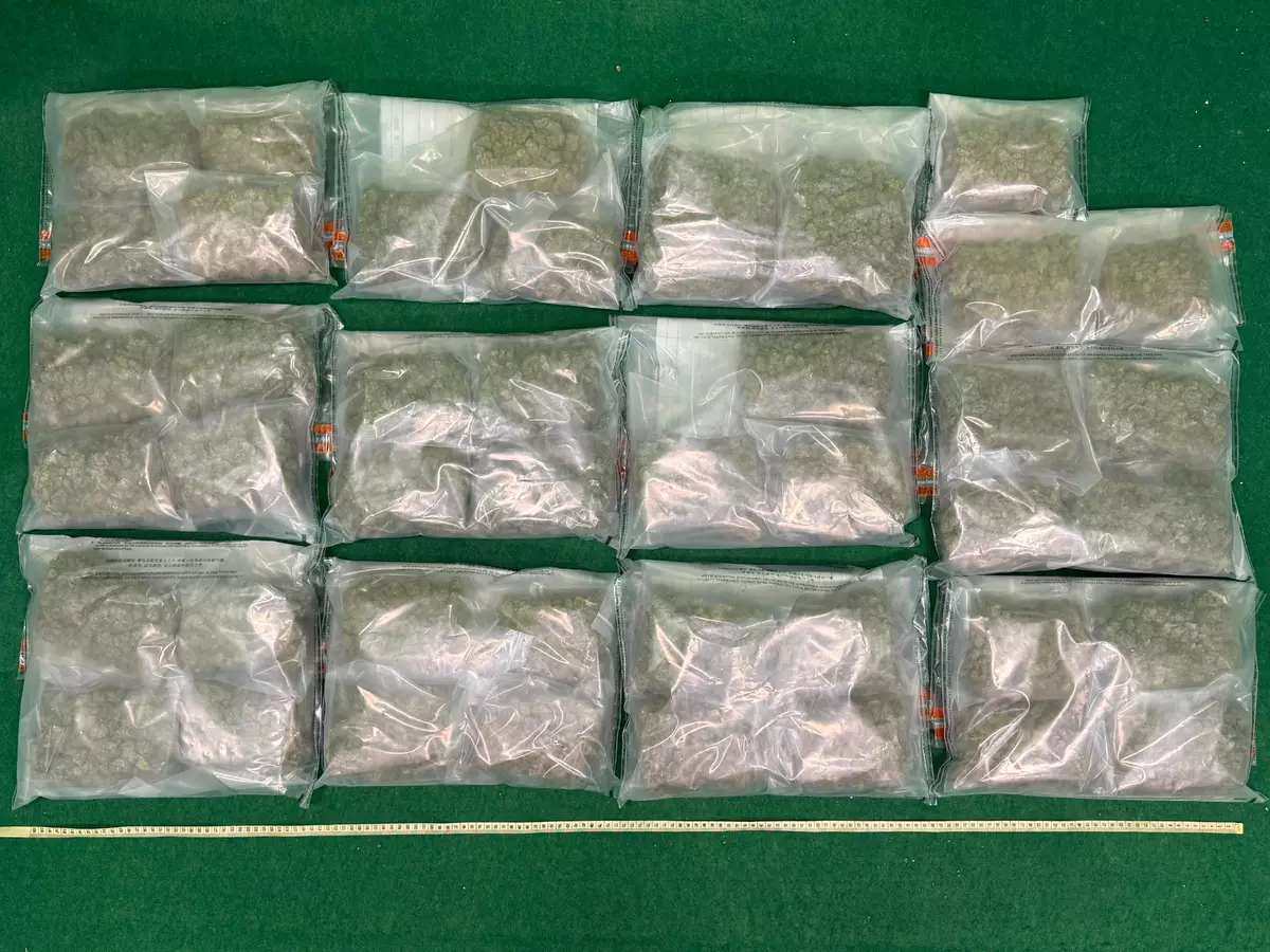 In the first case, a 33-year-old male passenger arriving in Hong Kong from Bangkok, Thailand, yesterday. During customs clearance, Customs officers found a total of about 6.5 kilograms of suspected cannabis buds with an estimated market value of about $1.4 million, in his carry-on baggage. The man was subsequently arrested.