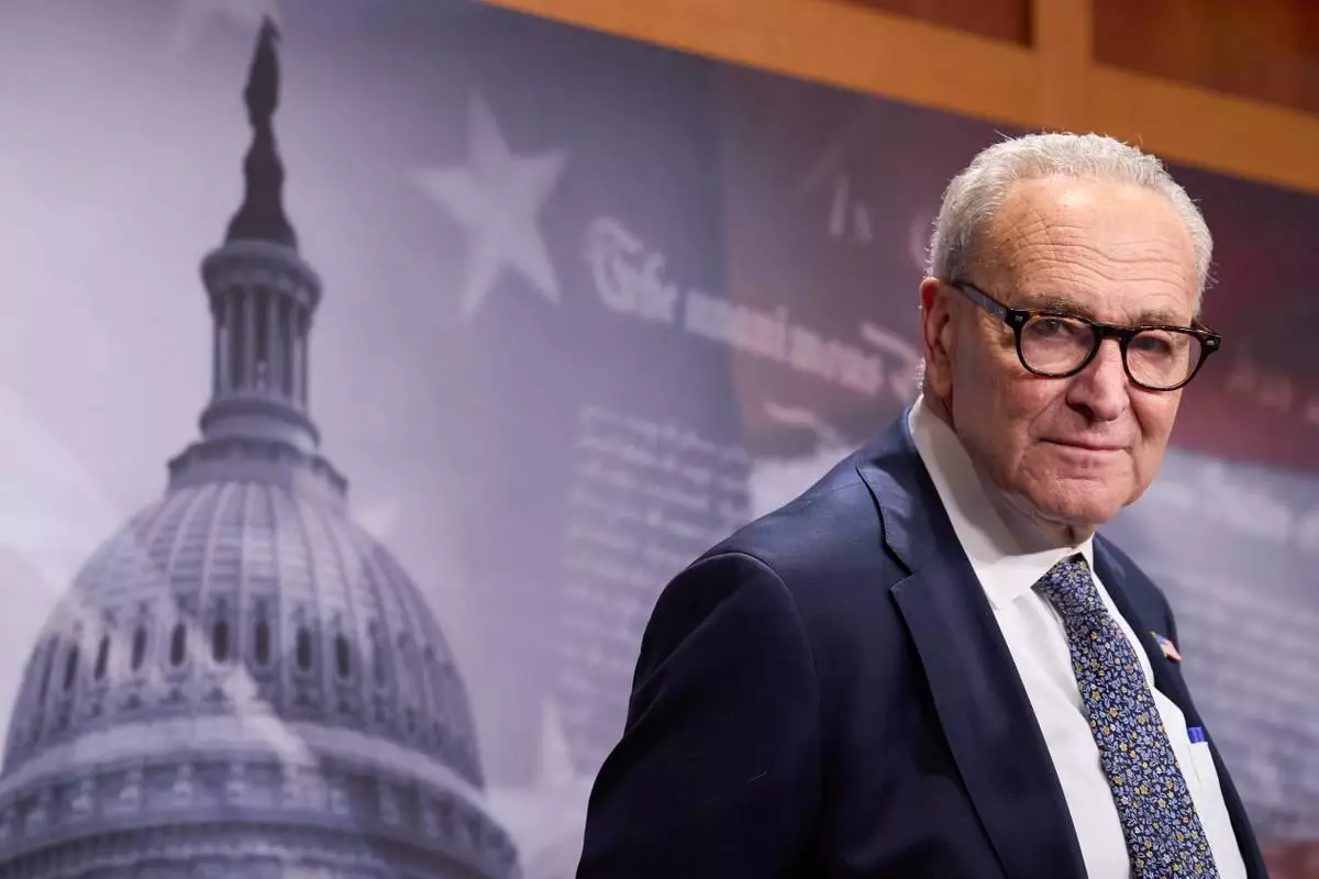 Senate Minority Leader Chuck Schumer, D-N.Y., attends a news conference about the government shutdown, Tuesday, Sept. 30, 2025, on Capitol Hill in Washington. (AP Photo/Jacquelyn Martin)