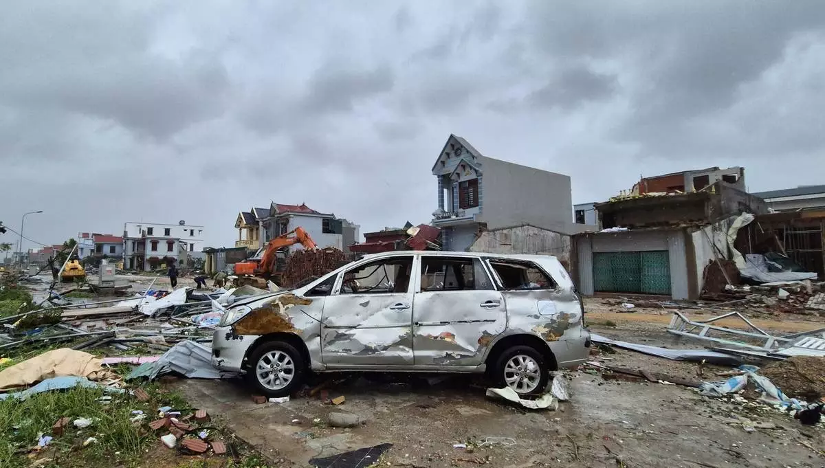 A damaged car is seen amid debris and other damaged buildings after Typhoon Bualoi swept through Thanh Hoa, Vietnam, Monday, Sept. 29, 2025. (Viet Hoang/VNExpress via AP)