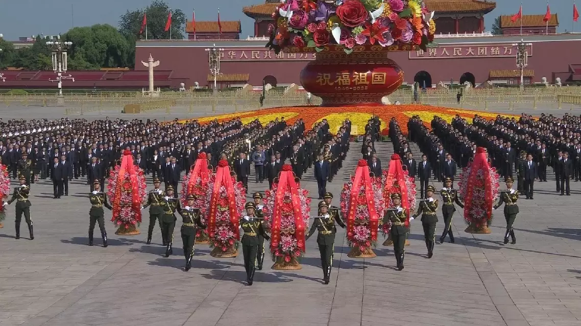 The ceremony started at 10:00. All attendees sang the national anthem, followed by a moment of silence in tribute to the heroes who laid down their lives for the liberation of the Chinese people and the development of the People's Republic of China.