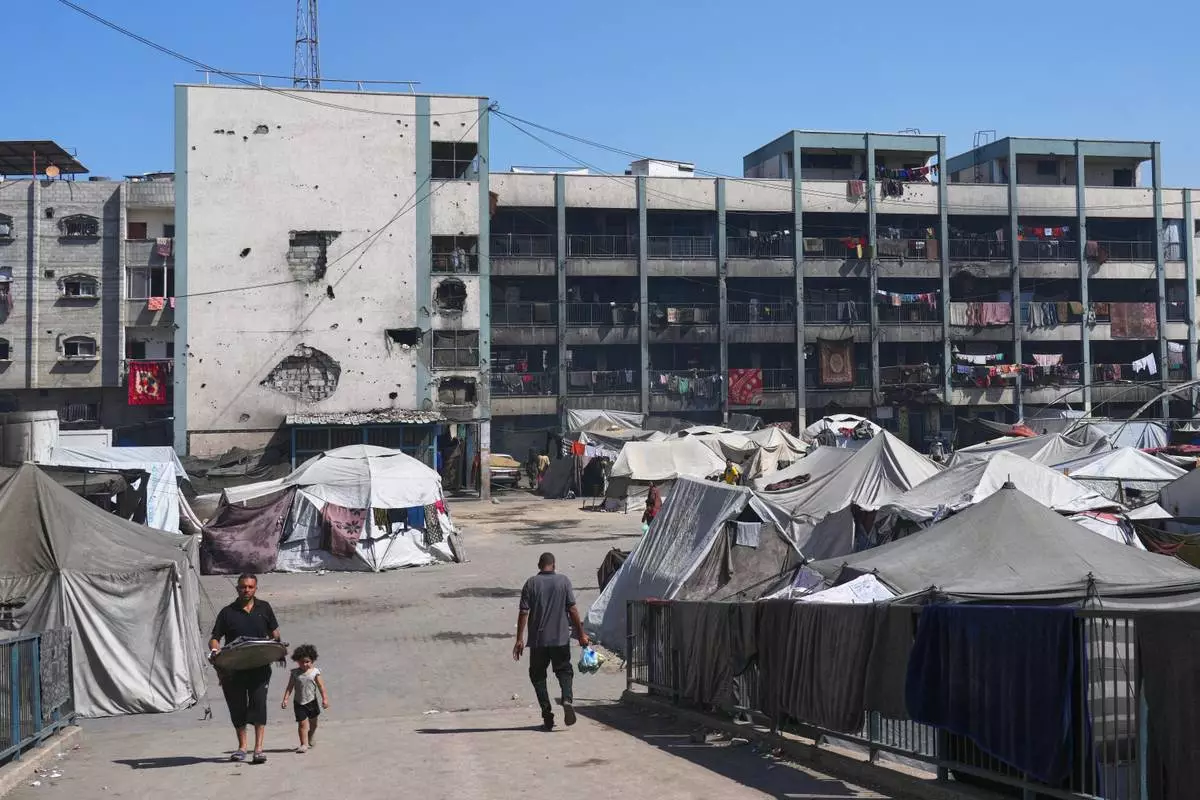 Tents are seen at UN school used as a shelter for displaced Palestinians in Khan Younis, Tuesday, Sept 30, 2025. (AP Photo/Jehad Alshrafi)