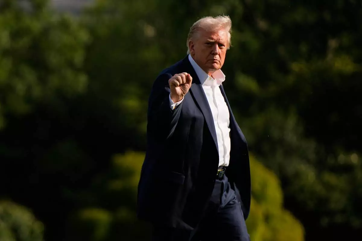 President Donald Trump gestures as he arrives at the White House, Friday, Sept. 26, 2025, in Washington. (AP Photo/Julia Demaree Nikhinson)
