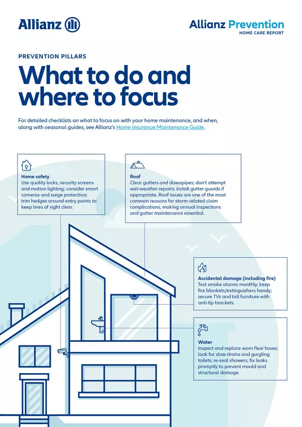 - Allianz is calling on Australian homeowners to prioritise essential home maintenance, with simple, practical actions that may help to reduce preventable claims and protect their homes and insurance coverage.