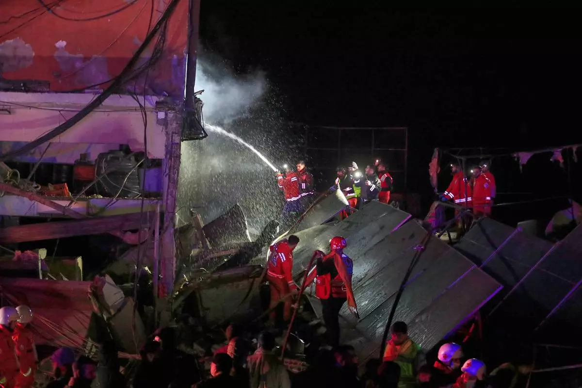 Lebanese fire fighter extinguish a building destroyed by an Israeli airstrike in the southern port city of Sidon, Lebanon, early Tuesday, Jan. 6, 2026. (AP Photo/Mohammed Zaatari)