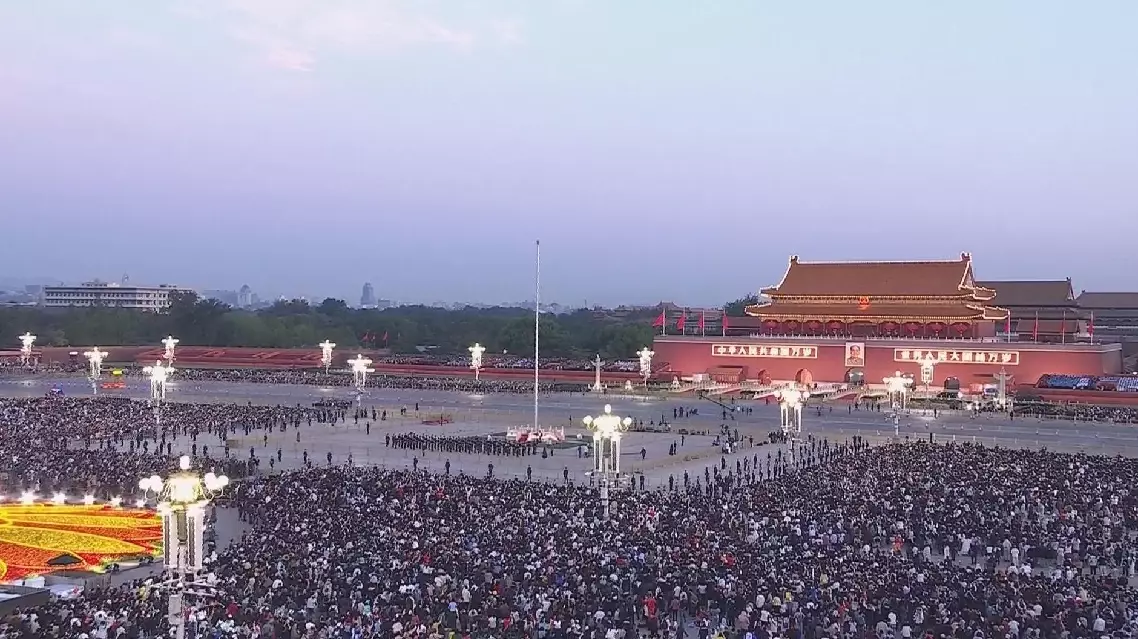 Thousands of spectators from all over the country had gathered in the square from the early morning, waiting for hours to witness the flag raising. They sang along with the military band playing the Chinese national anthem as the flag was raised, many held national flags in their hands.
