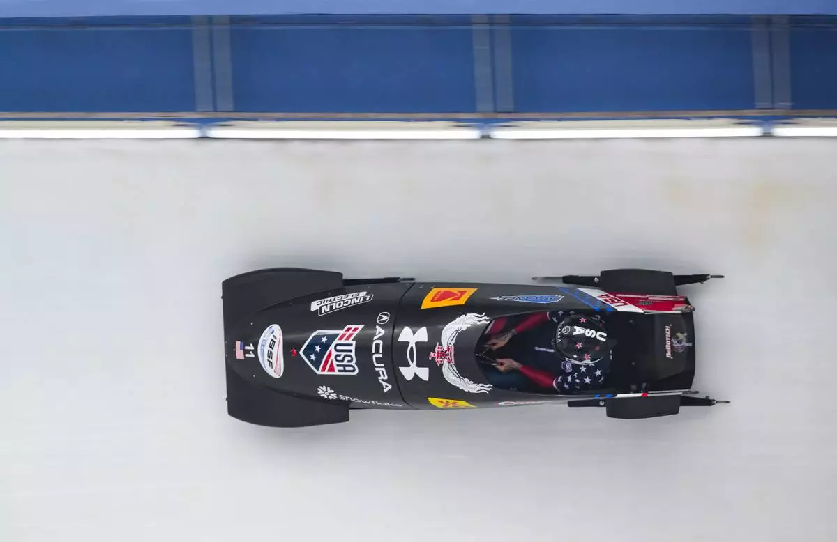 Kaillie Armbruster Humphries of the U.S. descends the track during the monobob, women, 1st run competition of the Bobsleigh World Cup, in Altenberg, Germany, Saturday Jan. 17, 2026. (Robert Michael/dpa via AP)