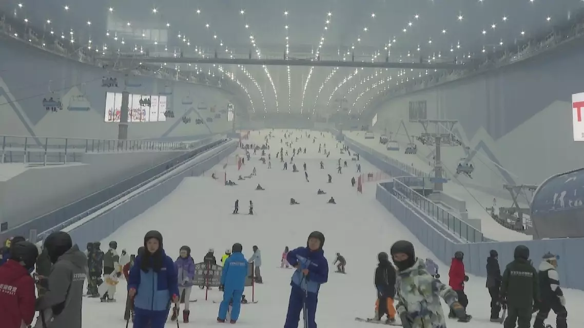 "This is the world's largest indoor snow resort, spanning 100,000 square meters. Our facility features five ski slopes, each equipped with cable cars and conveyor belts. Two of our slopes are certified by the International Ski Federation for professional competitions," said Zhang Ye, manager of the training center of the Shenzhen Qianhai Huafa Ice and Snow Sports.