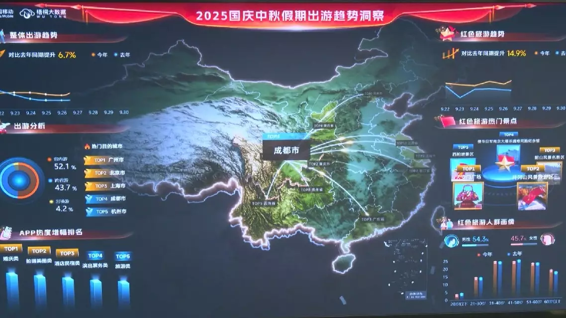 "Through our analysis of big data in communication services, we found that the number of travelers began climbing on Sept 27 and reached its peak on Oct 1. The number of travelers is projected to see a daily average increase of 3.5 percent year on year," said Yongqing Lhamo, assistant general manager of China Mobile's Digital Intelligence Department.