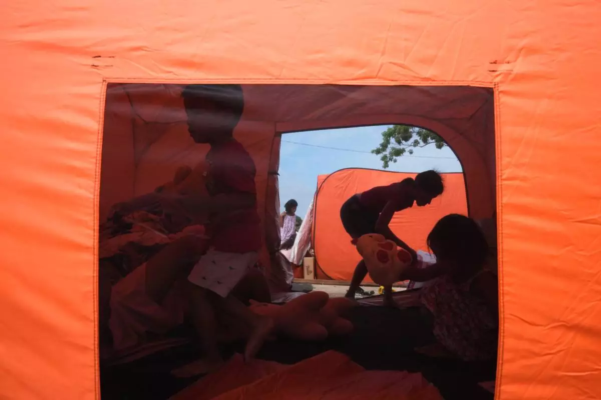 Earthquake survivors stay in tents on Thursday, Oct. 2, 2025 after Tuesday's strong quake in San Remigio, Cebu Province, Central Philippines. (AP Photo/Aaron Favila)