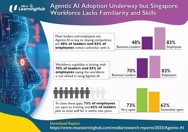 Commenting on the report's findings, Mr Amos Tan, Assistant Chief Executive and Chief Core Skills Officer, NTUC LearningHub, says, "The findings highlight that there is still a fundamental lack of understanding of AI and Agentic AI across workplaces. While adoption has started taking place, many employees and leaders themselves admit they are unfamiliar with the technology, and unsure of its implications. However, the success in this new era will take more than just technical know-how. Technical skills are essential, but human judgement, adaptability and ethics remain indispensable. Redesigning current jobs and developing the human capabilities enable workers to integrate Agentic AI thoughtfully and successfully in their day-to-day roles. By building this dual foundation of technological literacy and human strengths, organisations can then unlock the full potential of Agentic AI and build a workforce ready to thrive in an AI-driven future."