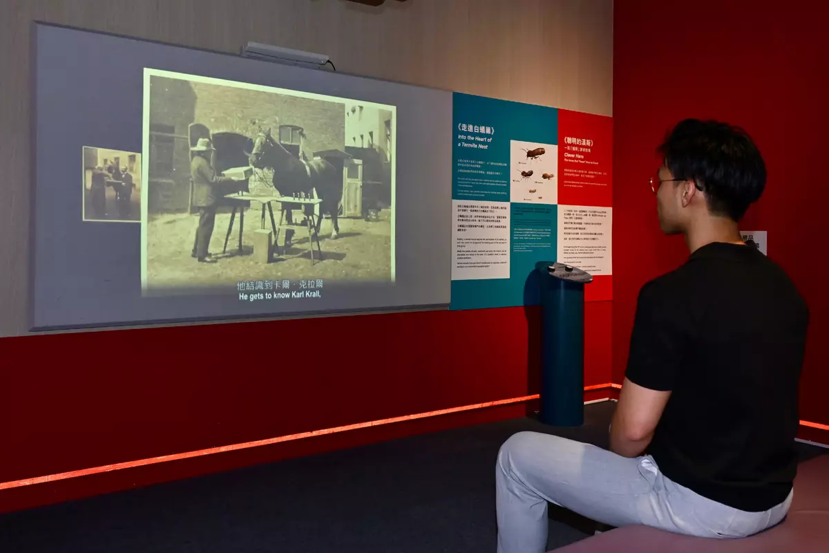 The exhibition also features videos on a termite nest, and a clever horse named Hans, offering further insights into animal intelligence. As well, visitors can assemble a brain puzzle to understand the functions of different areas of the brain. The reading corner in the exhibition gallery offers a selection of books from the Hong Kong Public Libraries, covering topics ranging from animal behaviour and survival wisdom to robotics and AI. Through these resources, members of the public can delve into the fascinating nature and diversity of intelligence.