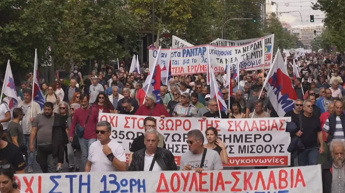 Tens of thousands of workers across Greece staged a 24-hour nationwide strike on Wednesday, protesting labor reforms and a government plan to extend working hours.