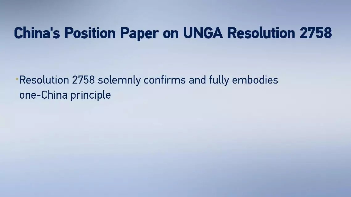 1.UNGA Resolution 2758 solemnly confirms and fully embodies the one-China principle.