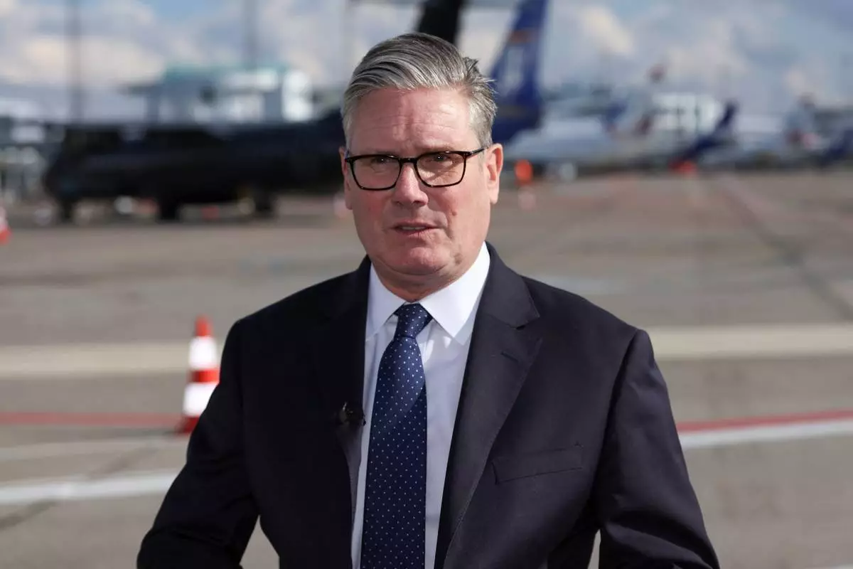 British Prime Minister Keir Starmer makes a statement about a stabbing incident in Manchester, England, after he left the European Political Community summit, at Copenhagen Airport, in Kastrup, Denmark, Thursday, Oct. 2, 2025. (Suzanne Plunkett/Pool Photo via AP)