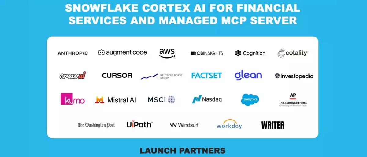 Cortex AI for Financial Services enables enterprise-ready agents to accelerate complex financial tasks — including market analysis, quantitative research, fraud detection, customer support, and claims management — saving enterprises time, reducing operational costs, and delivering faster insights. Snowflake’s MCP Server extends this capability by enabling industry-wide interoperability, securely connecting to Snowflake data, as well as third-party data and apps.