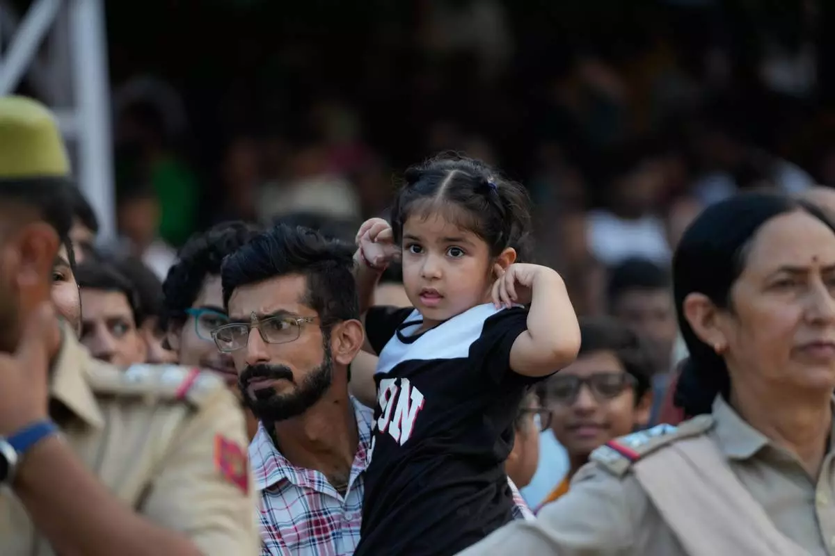 People watch a procession during Dussehra festival in Jammu, India, Thursday, Oct.2, 2025.(AP Photo/Channi Anand)