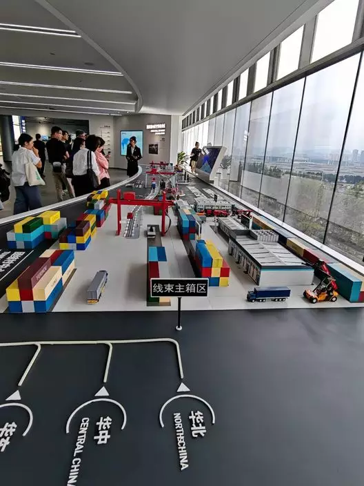A docent explains the situation at the Chongqing Railway Container Center Station.