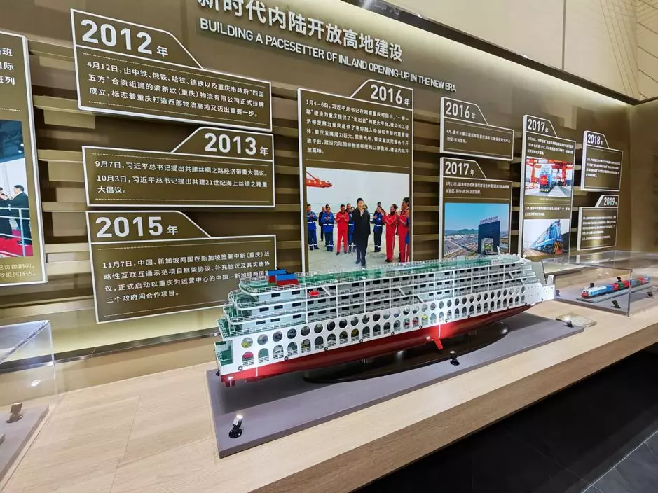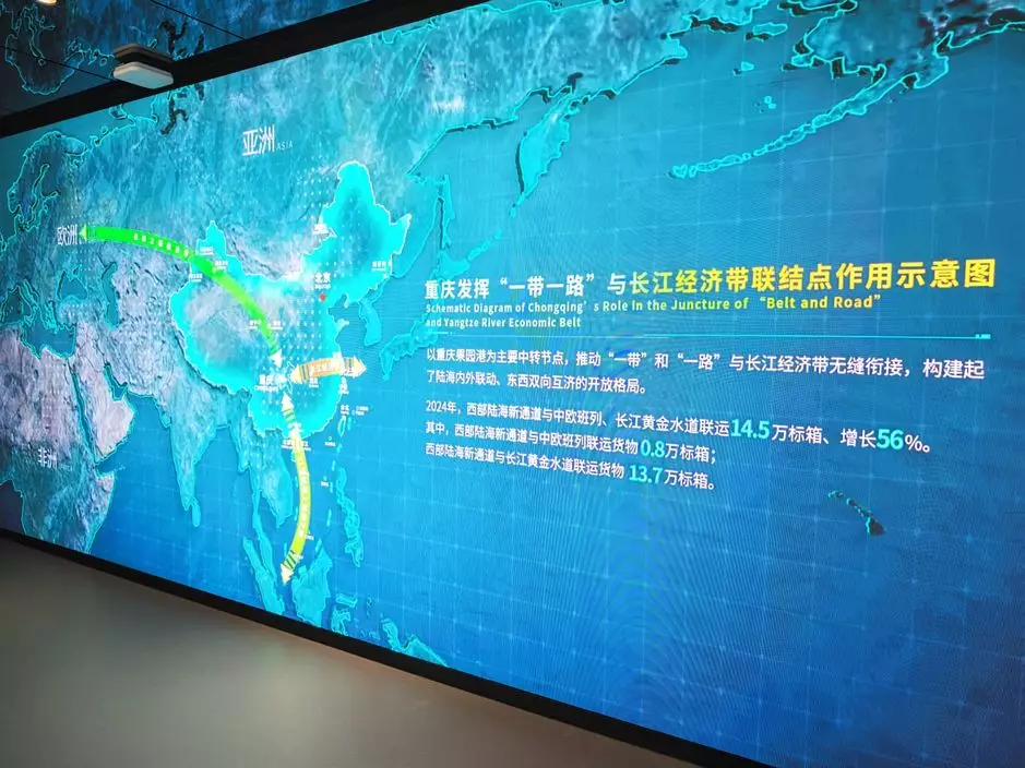 The core exhibition, spanning 2,100 square meters, features eight sections: Opening History, Hub City, Hub Corridors, Hub Stations, Hub Ports, Hub Economy, Hub Environment, and Open Outlook. These highlight Chongqing’s transformation from an inland region to an open hub, with logistics and urban development synergizing to support its hub city status.