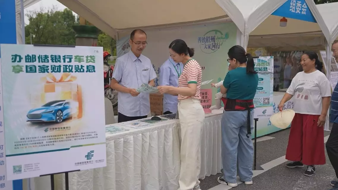 "For this year's Consumption Season, we've opened a green approval channel. After making purchases, customers can immediately apply for consumer loans here, get approved in real time, and enjoy discounted rates," said Zhu Kai, customer manager of the Dongpo District Branch, the Postal Savings Bank of China (Meishan).