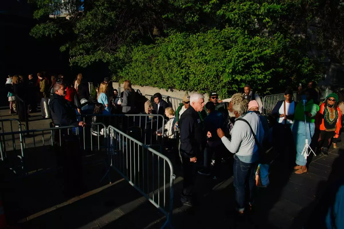 People wait outside to enter the Manhattan federal court for the sentencing of Sean "Diddy" Combs in New York, Friday, Oct. 3, 2025. (AP Photo/Eduardo Munoz Alvarez)